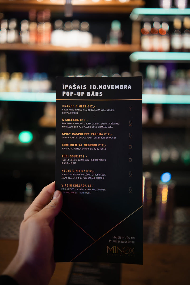 Premium dzērienu karte ar plašu izvēli